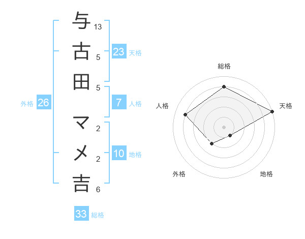 与古田 マメ吉さんを姓名の画数から五運を鑑定