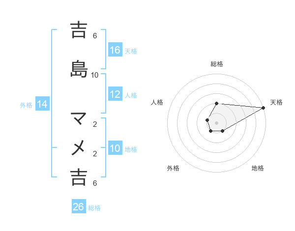 吉島 マメ吉さんを姓名の画数から五運を鑑定