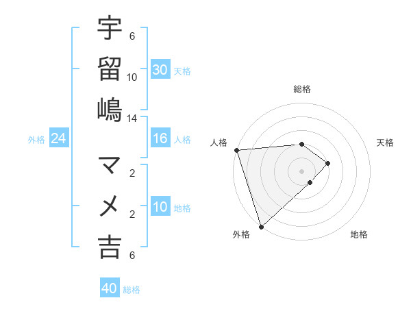 宇留嶋 マメ吉さんの総格は40画の2点!
