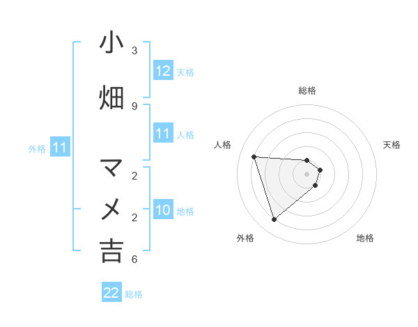 小畑 マメ吉さんを姓名の画数から五運を鑑定