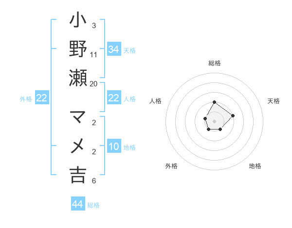 小野瀬 マメ吉さんの総格は44画の2点!