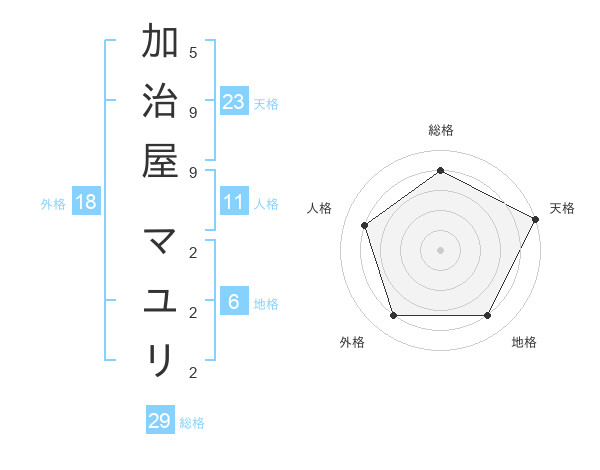 加治屋 マユリさんを姓名の画数から五運を鑑定