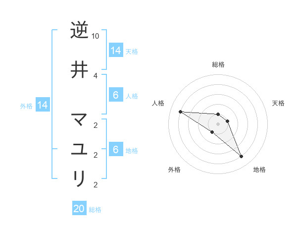 逆井 マユリさんを姓名の画数から五運を鑑定