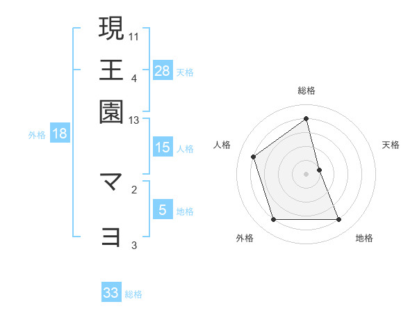 現王園 マヨさんの総格は33画の4点!