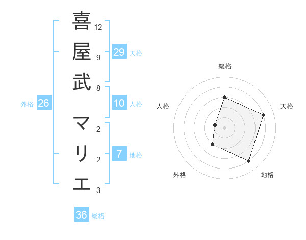 喜屋武 マリエさんを姓名の画数から五運を鑑定