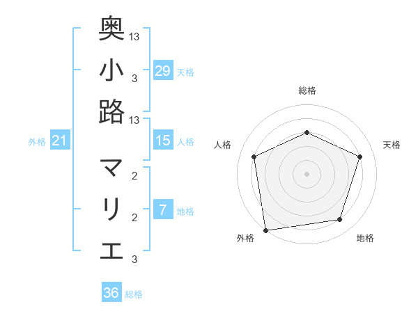 奥小路 マリエさんを姓名の画数から五運を鑑定