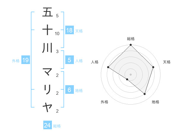 五十川 マリヤさんを姓名の画数から五運を鑑定