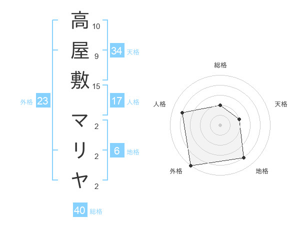 高屋敷 マリヤさんを姓名の画数から五運を鑑定