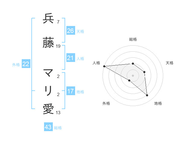 兵藤 マリ愛さんを姓名の画数から五運を鑑定