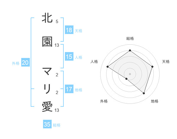 北園 マリ愛さんの総格は35画の4点!