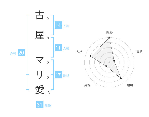 古屋 マリ愛さんを姓名の画数から五運を鑑定