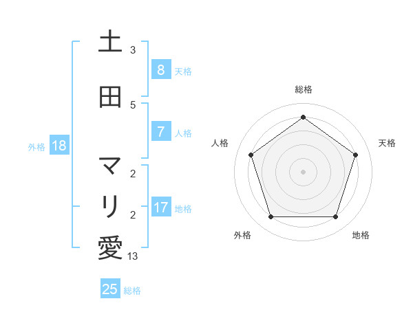 土田 マリ愛さんを姓名の画数から五運を鑑定