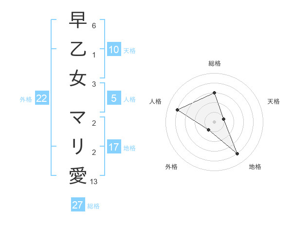 早乙女 マリ愛さんを姓名の画数から五運を鑑定