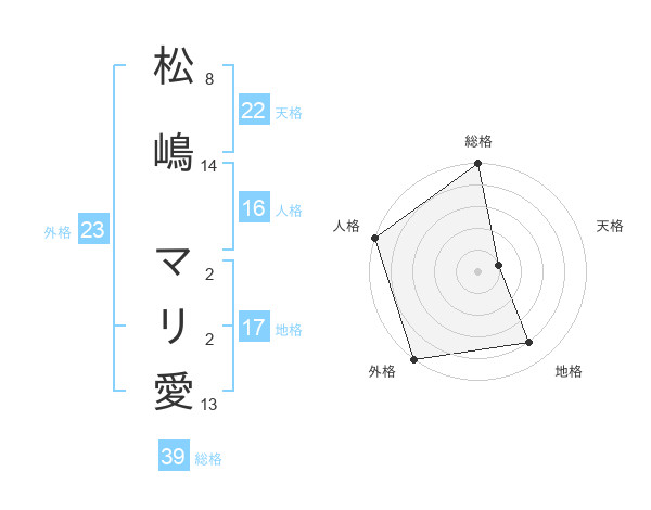 松嶋 マリ愛さんの外格は23画の5点!