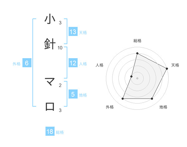 小針 マロさんの天格は13画の5点!