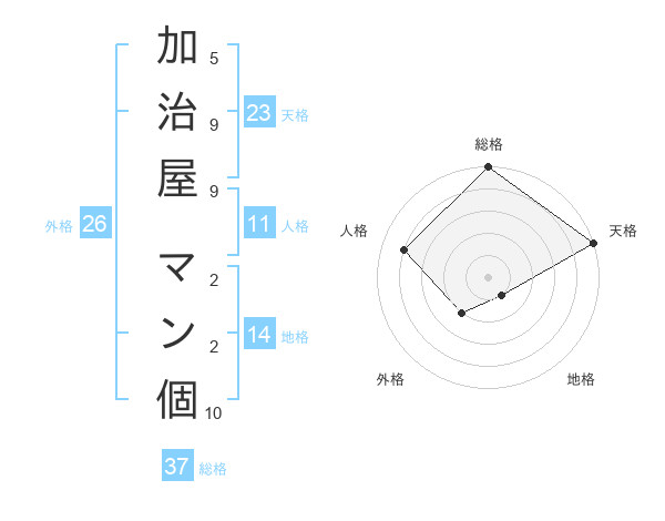 加治屋 マン個さんの天格は23画の5点
