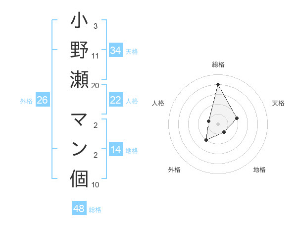 小野瀬 マン個さんの総格は48画の4点