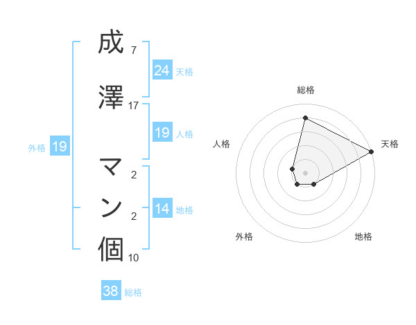 成澤 マン個さんの総格は38画の4点!