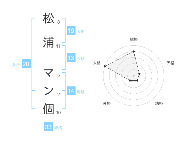 松浦 マン個さんを姓名の画数から五運を鑑定