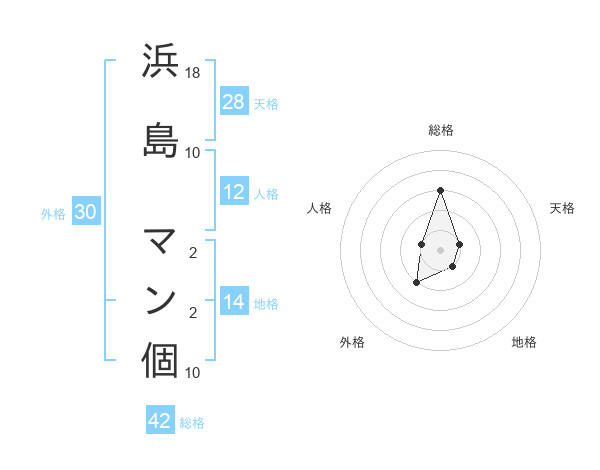 浜島 マン個さんを姓名の画数から五運を鑑定