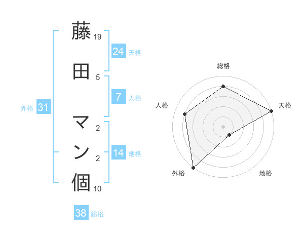 藤田 マン個さんを姓名の画数から五運を鑑定