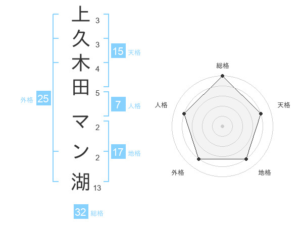 上久木田 マン湖さんの総格は32画の5点