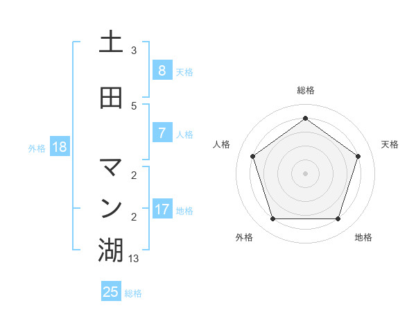 土田 マン湖さんの総格は25画の4点!