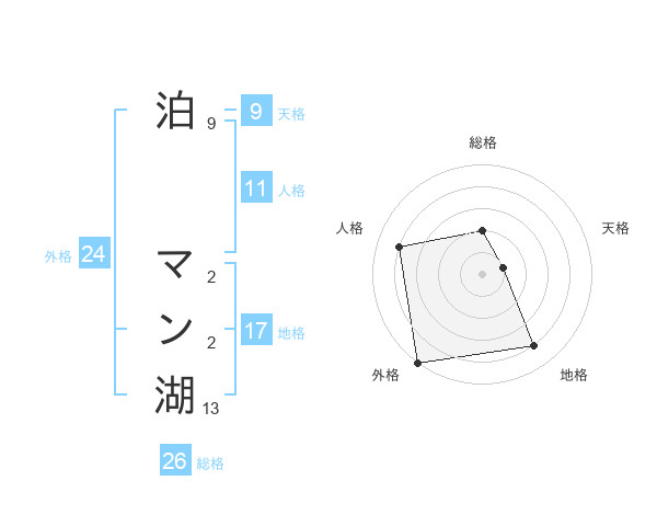 泊 マン湖さんの総格は26画の2点!