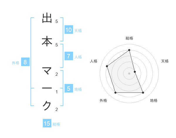 出本 マークさんの総格は15画の4点!