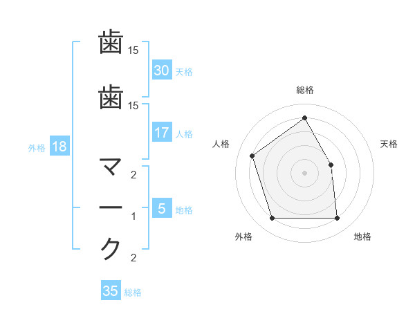歯歯 マークさんを姓名の画数から五運を鑑定
