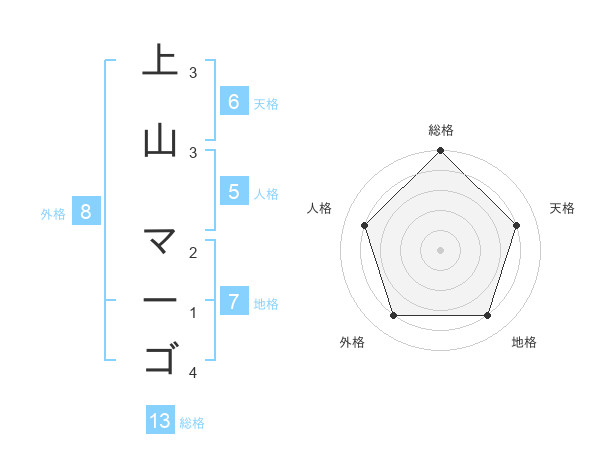 上山 マーゴさんを姓名の画数から五運を鑑定