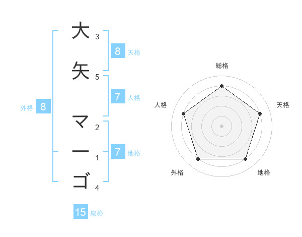 大矢 マーゴさんを姓名の画数から五運を鑑定