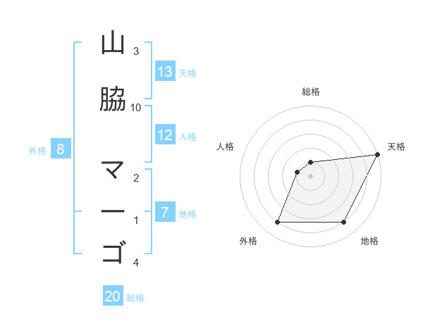 山脇 マーゴさんを姓名の画数から五運を鑑定