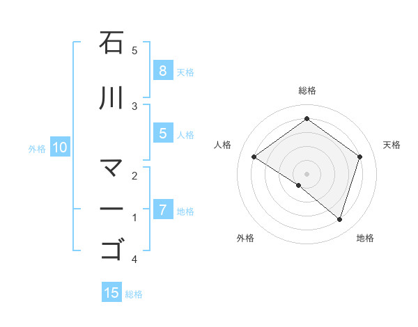 石川 マーゴさんの総格は15画の4点
