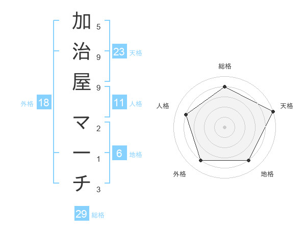 加治屋 マーチさんの天格は23画の5点!