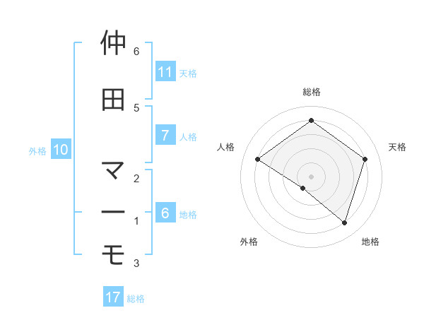 仲田 マーモさんを姓名の画数から五運を鑑定