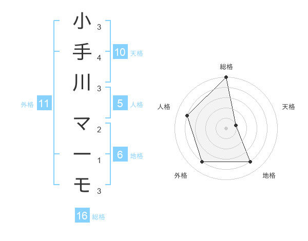 小手川 マーモさんを姓名の画数から五運を鑑定