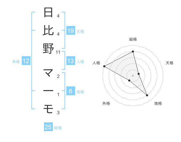 日比野 マーモさんを姓名の画数から五運を鑑定