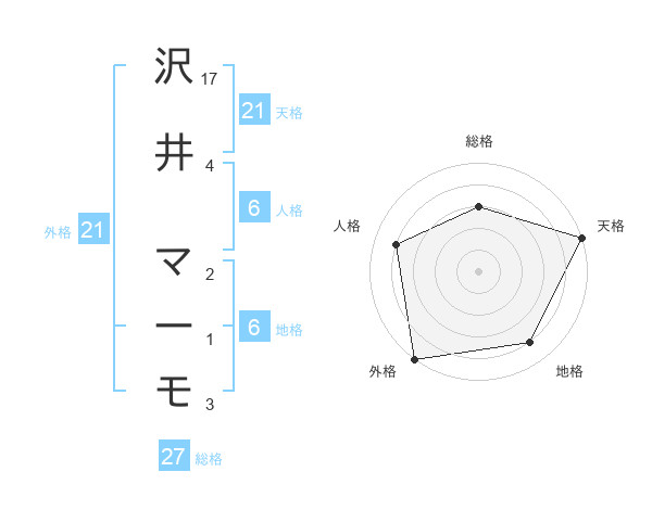 沢井 マーモさんの外格は21画の5点