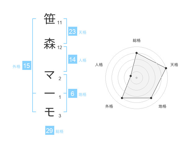 笹森 マーモさんを姓名の画数から五運を鑑定