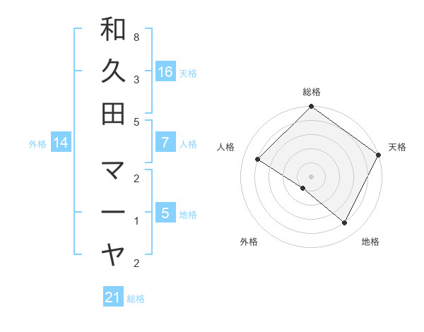 和久田 マーヤさんを姓名の画数から五運を鑑定