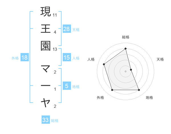現王園 マーヤさんを姓名の画数から五運を鑑定