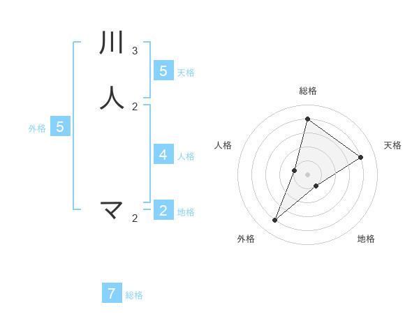 川人 マさんの外格は5画の4点!