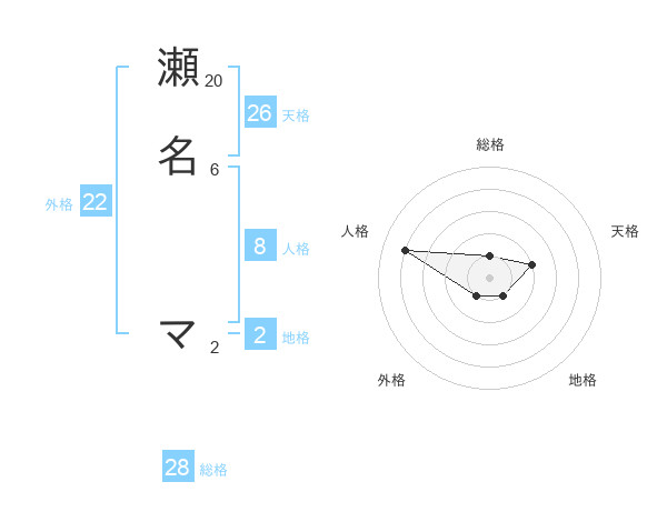 瀬名 マさんの総格は28画の1点!