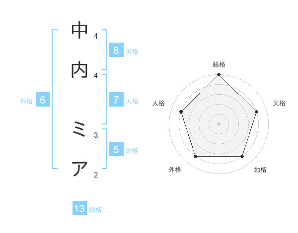 中内 ミアさんの総格は13画の5点!