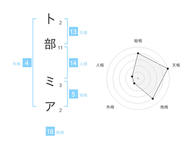 卜部 ミアさんを姓名の画数から五運を鑑定