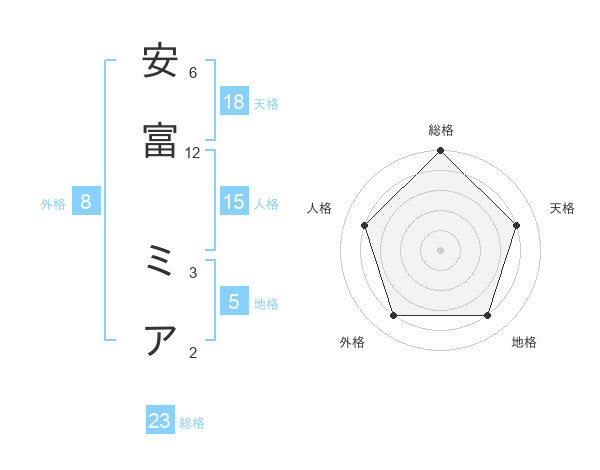 安富 ミアさんの天格は18画の4点!