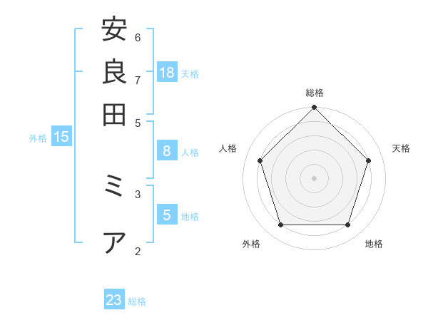 安良田 ミアさんを姓名の画数から五運を鑑定