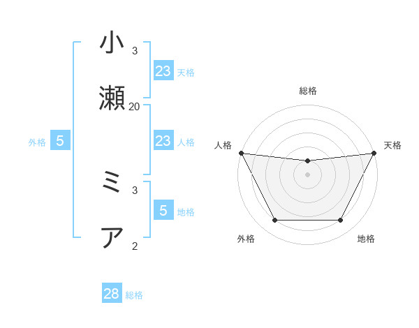 小瀬 ミアさんを姓名の画数から五運を鑑定