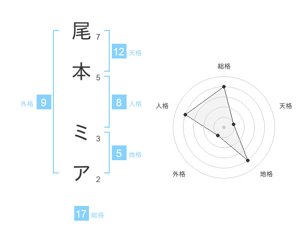 尾本 ミアさんを姓名の画数から五運を鑑定